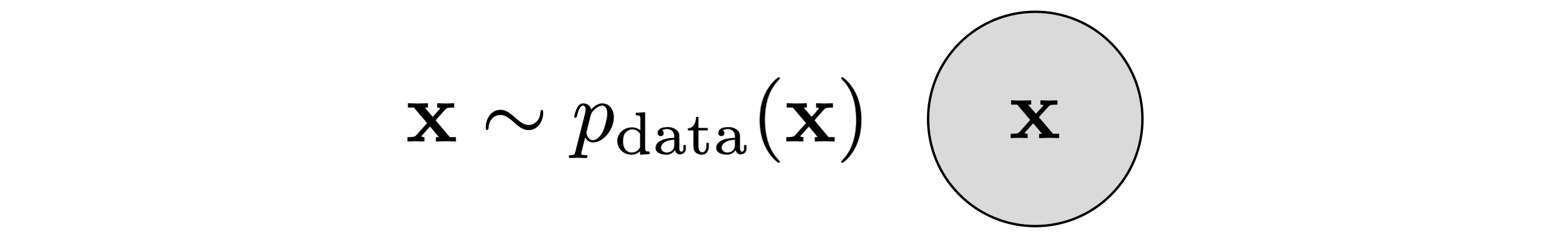 We begin by abandoning the graphical model we've been studying up to now. Instead consider the general case of learning a model of observations \(\mathbf{x}\) drawn from \(p_\mathrm{data}(\mathbf{x})\).